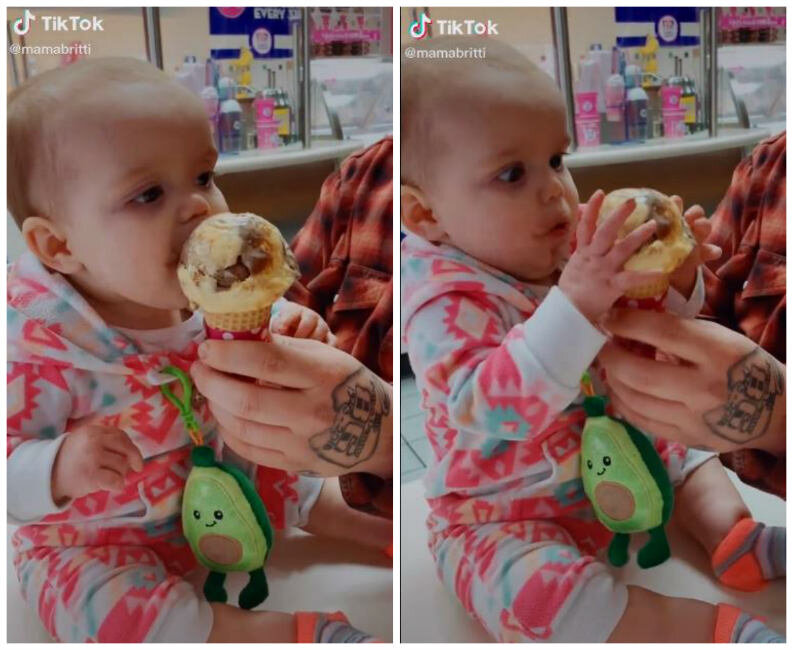 Родители решили заснять, как их 9-месячная дочка впервые попробовала мороженое. Видео стало популярным, и подняло настроение пользователем соцсетей. Особенно оно понравилось любителям десертов. Историю веселого видео опубликовало издание "PopSugar". Первое мороженое Большинство из нас не помнят свое знакомство с мороженым, тем более мало кто знает, какова была реакция на новый вкус. Этой девочке по имени Блейкли повезло. Родители решили снять для семейного архива, как она впервые попробовала мороженое. Инициатором стала мама Бриттани Джерниган, которая решилась дать попробовать малышке десерт на вкус. Женщина даже не ожидала, что реакция у ребенка будет такой яркой. Папа протягивает дочери рожок с подтаявшим мягким мороженым. Малышка понимает что нужно делать, и пробует маленький кусочек. В этот момент ее глаза широко раскрываются от восторга. Блейкли явно хочет получить больше такого угощения. Она хватает руками рожок и пытается съесть как можно больше, но папа старается убрать моро