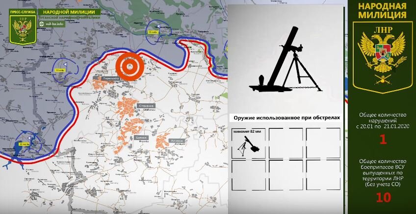 21 января 2020 Обстановка на линии соприкосновения за сутки | Карта обстрелов