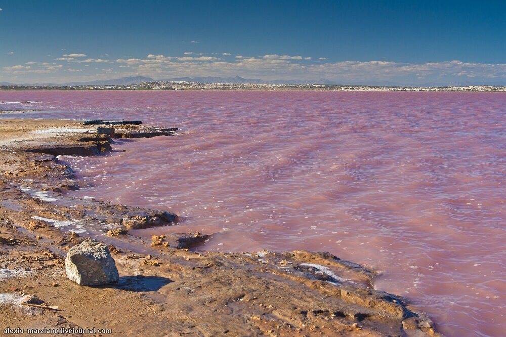 На Земле существует довольно много водоёмов с водой красного или розового оттенка. Большая их часть является озерами с запредельной концентрацией соли. Наиболее известны из них озеро Хиллер, Лагуна Хатт, Розовое озеро в Голдфилдс-Эсперанс, озеро Квайрадинг (все 4 находятся в Австралии), озеро Ретба в Сенегале, озеро Масазир в Азербайджане, пыльное розовое озеро в Канаде (не солёное) и озеро Салинас де Торревьеха в Испании, о котором и пойдет речь.
