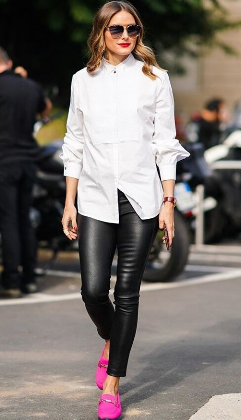 Кожаные вещи стали трендом последних сезонов и по прогнозам стилистов станут абсолютной базой уже в 2020 году. Так что присмотреть лучшие модели из кожи лучше уже сейчас Кожаные брюки и легинсы Легинсы из кожи стали хитом продаж еще пару-тройку лет назад. В 2020 году они не сдают позиции, хотя и уступают место более свободным брюкам из кожи. Но если кожаные брюки прямого кроя с визуальным расширением книзу все-таки пока новинка, то кожаные легинсы, плотно сидящие по фигуре смело можно вносить в базовый гардероб. Они прекрасно сочетаются как с расслабленными свитерами, джемперами и водолазками, так и уместно смотрятся с классическими пиджаками, удлиненными туниками и белыми рубашками. Кожаные шорты Мало какая вещь может похвастаться такой популярность в этом сезоне, как кожаные шорты. Они стали пожалуй самыми востребованными зимой 2019-2020. Кожаные шорты носили с искусственными шубами, с тяжелыми армейскими ботинками и утонченными остроносыми ботильонами, с женственными блузами и клас