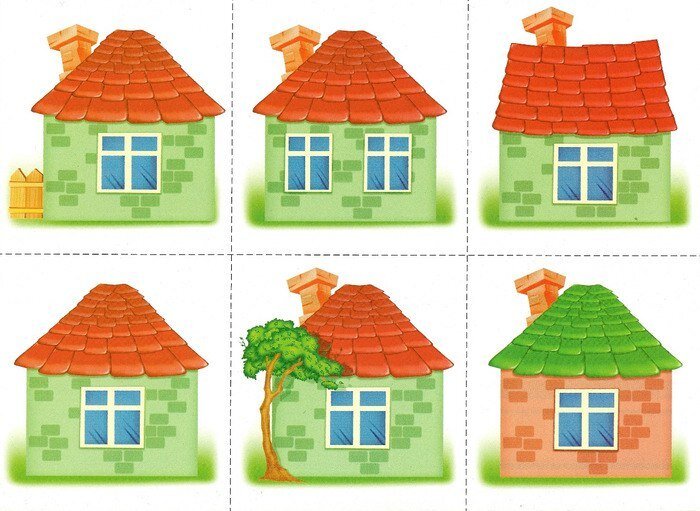 Эта игра развивает зрительное восприятие, произвольное внимание, логическое мышление, память и связную речь. 1 вариант Раздайте детям карточки из каждой группы по одной или несколько, затем поочередно показывайте разные карточки. Каждый из детей собирает картинки своей группы. Когда все 6 карточек будут собраны, нужно рассказать, чем каждая из них отличается от остальных. 2 вариант Разложите перед ребенком несколько разных карточек, предложите запомнить их, а затем отвернутся. Поменяйте карточки местами, уберите 1-2, добавьте 1-2 новые. Предложите ребенку рассказать, что изменилось. 3 вариант Разложите перед ребенком карточки одной группы и предложите найти отличия. 4 вариант Предложите ребенку взять наугад несколько разных карточек (например: снеговик, домик, синичка, машина) и придумать сказку или рассказ, в котором присутствуют все эти предметы.