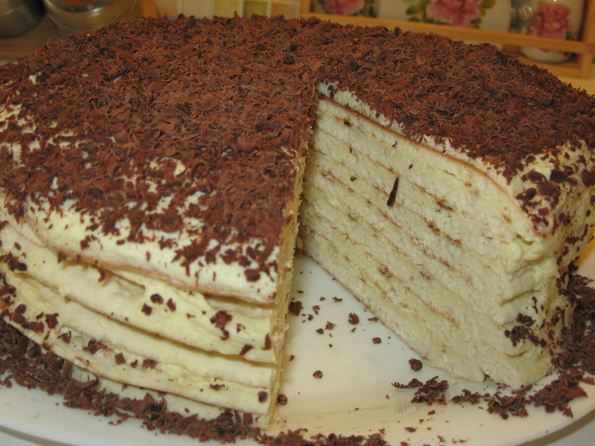 Ингредиенты: Для крема: Пошаговый рецепт приготовления: Перед приготовлением теста, все ингредиенты нужно достать из холодильника. Размягченный маргарин комнатной температуры перетереть с сахарным песком, заем добавить яйцо, сметану и мускатный орех. Хорошо перемешать сливочную массу. В отдельной емкости смешать просеянную муку с содой (НЕ ГАСИТЬ!). Постепенно всыпать мучную смесь в жидкую и замесить однородное тесто, сформировать из него шар, разделить его на 7-8 равных коржей. Убрать тесто в холодильник на 1 час После этого каждый кусочек теста раскатать в пласт. Разогреть СУХУЮ БЕЗ МАСЛА сковороду, выложить один корж и выпекать с двух сторон на умеренном огне до румяного цвета. Выпечь все оставшиеся коржи. Дать выпечки остыть. Тем временем приготовим крем, для этого творог перетереть через сито, добавить сметану и хорошо взбить миксером на малых оборотах. Небольшими порциями всыпать в наш творожный крем сахар. Взбить творожный крем до однородной воздушной консистенц