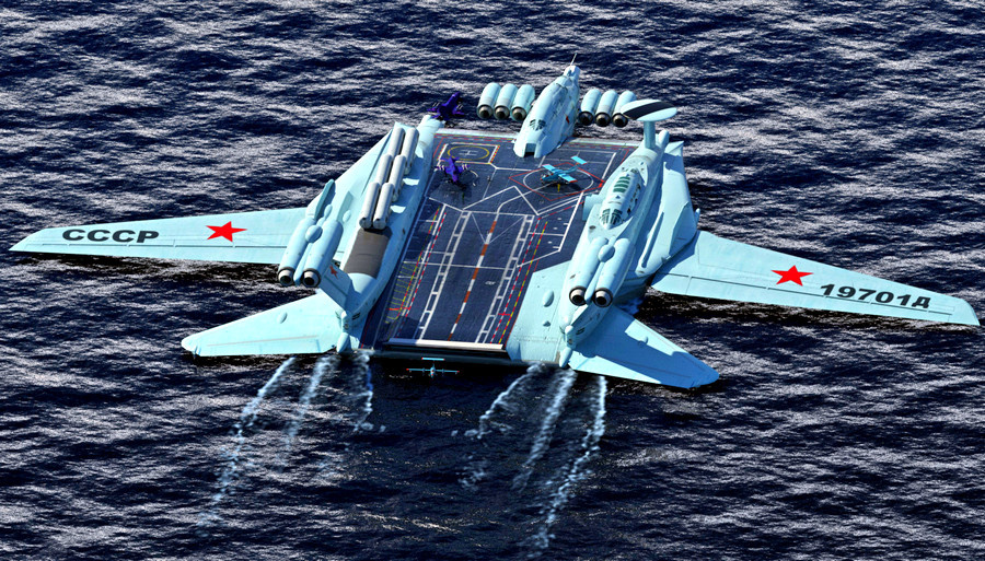 Советский Союз создал целую серию удивительных транспортных средств — экранопланов, — способных на уничтожение авианосцев неприятеля. К сожалению, в 90-е годы почти все наработки были уничтожены. Говорят, что в этот день в ЦРУ все общались исключительно самыми грязными ругательствами. Во время проявки кадров, снятых самолётом-разведчиком U-2, в акватории Каспийского моря было замечено нечто невероятное. Судя по фотографиям, над поверхностью моря летел гигантский самолёт со скоростью около 500 километров в час. Тогда это чудо техники и получило прозвище "Каспийский монстр", а американские разведчики начали разработку по советским экранопланам, едва ли не самым удивительным военным машинам того времени. Таким образом говорить что в СССР экранопланов не было, потому что тогда выпускали только калоши не было это полнейший бред уровня нашего президента. Конечно же они были и это были фантастические машина намного опередившие время. Но в статье речь пойдет об фейковом атомном авианесу