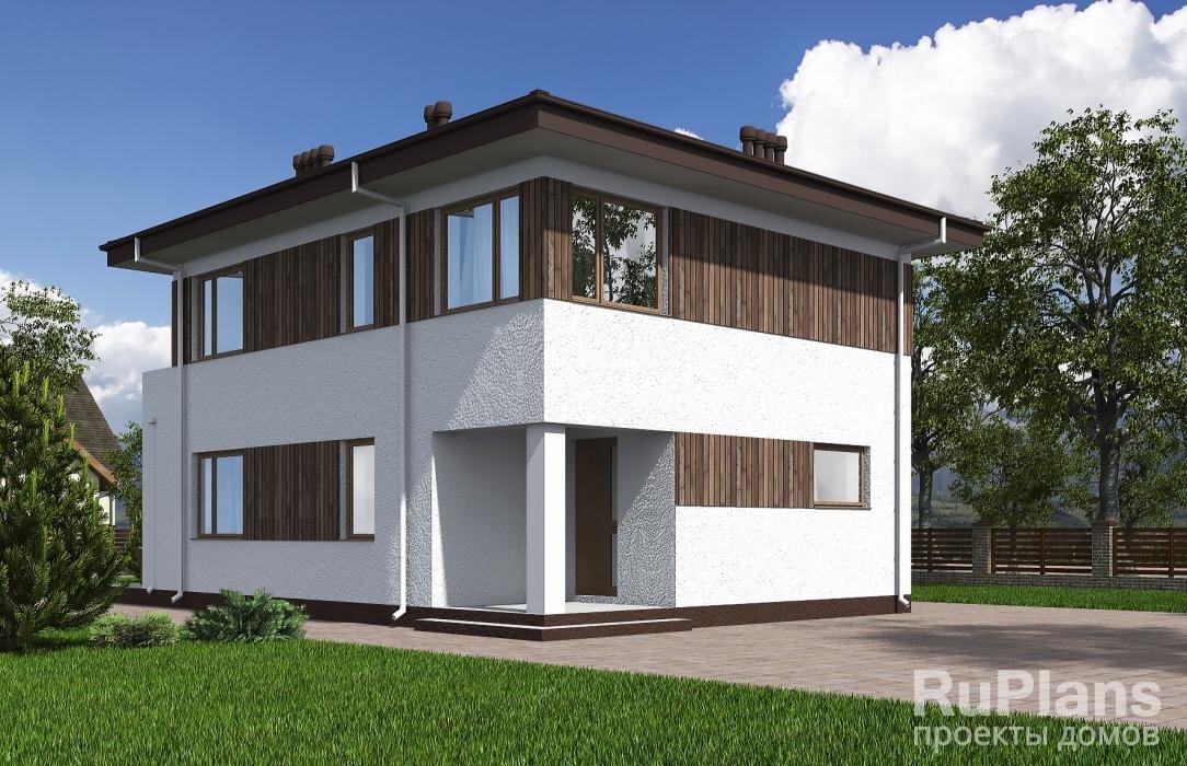 В экстерьере этого дома современные мотивы дополняются деревянными панелями.С балкона открывается прекрасный вид, а терраса с выходом через французское окно служит мостиком объединяющим ваш участок с домом в одно комфортное пространство для жизни. Первый этаж дома - это общественная зона. Большая гостиная с камином и панорамным окном, где сможет собраться вся ваша семья, а в погожий день обед или ужин можно устроить на террасе. Кухня частично отделена от гостиной, тут же расположена кладовая, чтобы все необходимое было под рукой. Второй этаж - приватная зона. Здесь расположены три спальни удобного размера, две из них имеют выход на общий балкон. У спальни хозяев есть свой гардероб. Хотите обсудить проект или задать вопрос? Пишите в комментариях. Получить дополнительную информацию и купить проект можно здесь Больше наших проектов в каталоге
