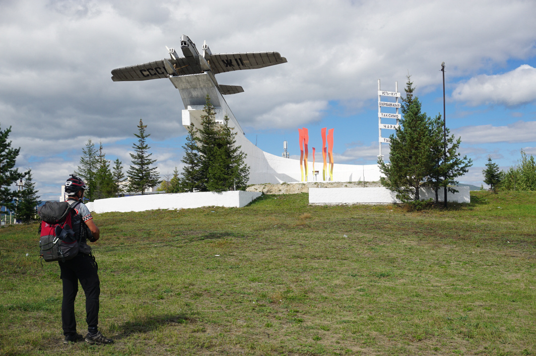 • Шестая часть Таксимо́, в котором мы выгрузились утром 3-го сентября, произвёл самое благоприятное впечатление. Жители мне показались приветливыми, доброжелательными и в меру любопытными - ну три чудака на велосипедах, мало ли таких на свете. Памятник погибшему в авиакатастрофе при изысканиях экипажу самолёта ТБ-1 на одной из транспортных развязок в Таксимо. А сейчас будут стихи, всем тихо: Когда надкусываешь буузу -