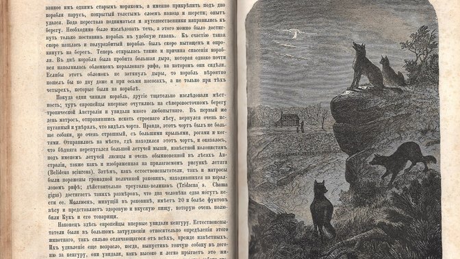 В Австралии бушуют самые мощные за всю историю страны лесные пожары. По разным данным, в огне погибло от 800 миллионов до 1,25 миллиарда млекопитающих, птиц и рептилий. Многих из них не встретить больше нигде в мире. Вместе с Библиотекой иностранной литературы выбрали книги прошлого и позапрошлого веков и отсканировали изображения уникальных животных этого континента. «Австралия. История открытия и колонизации, растения и животные пятой части света» Увлекательный труд немецких исследователей перевели на русский язык в 1871 году. Ценный не только с исторической, но и с дизайнерской точки зрения экземпляр. Очарование позапрошлого столетия сохранилось в оформлении – каждая глава начинается с уникальной буквицы, иллюстрации животных и австралийских лесов выполнены в одной технике. Но основное достоинство книги в ее литературности. Вышел хороший такой приключенческий роман: есть морские путешествия, охота на бамбуковом болоте и первая встреча с волшебными существами (для европейцев того вр