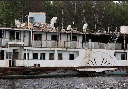 Мы часто совершаем внедорожные вылазки на волжские берега. Совсем недалеко от Москвы, на берегу реки Малая Пудица, впадающей в реку Медведица, еще недавно находился уникальный образец инженерной мысли прошлого, колёсный пароход Достоевский. Река Медведица, в свою очередь впадает в Волгу, в результате образуется этакий вытянутый полуостров, добраться на машине туда возможно, одним единственным маршрутом. Потому и места остановок из года в год остаются неизменными. Мне всегда очень нравилось приезжать к месту стоянки парохода Достоевский. Пароход был построен в Венгрии в 1956 году для Советского Союза. Суда этого проекта ходили по Волге, Каме, Оби, Лене, Днепру… да по всей стране они ходили. Достоевский, о котором идёт речь, вплоть до 1994 года ходил по маршруту Москва-Нижний Новгород-Астрахань, но был списан и поставлен на прикол возле турбазы в Малой Пудице. В советскую бытность пароход успел сняться в нескольких фильмах. Все наверняка помнят «Жестокий романс», где название Достоевск
