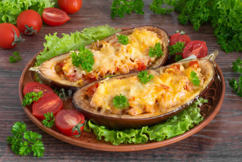 Доброго времени суток, дорогие читатели. Сегодня я Вам расскажу и покажу пошагово, как приготовить замечательные фаршированные баклажаны "Лодочки". Рецепт мне подсказал мой замечательный друг, который работает в ресторане Су-Шефом. Это блюдо у нас на второе, подается теплым. Советы по приготовлению Баклажаны выбирайте большие и желательно одинаковые по размеру, чтобы приготовились в одно время. Ветчину можно использовать любую (куриную, свиную, телячью...) Если хотите, можете взять зелень (петрушка, укроп, базилик...) Ингредиенты: Баклажан: 2 шт. Ветчина: 150 гр. Сыр Российский: 100 гр. Помидор: 2 шт. Лук репчатый: 1 шт. Масло растительное: 3 ст. л. Поваренная соль: 0.5 ч. л. Перец черный молотый: 1 щепотка Приготовление: 1. Берем пару красивых баклажанов (каждый около 250 граммов), моем их и обсушиваем. Разрезаем вдоль пополам и чайной ложкой аккуратно вынимаем мякоть, оставляя небольшие стеночки (толщиной примерно 5 мм). 2. Мякоть баклажанов нарезаем довольно мелкими кубиками. Лу