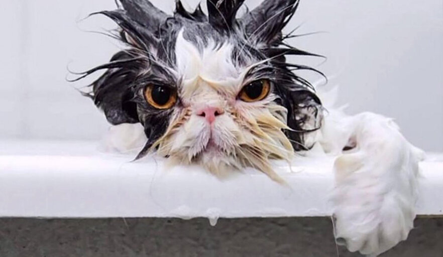 Редкий кот любит водные процедуры. Но иногда мытьё необходимо: загрязнение шерсти на прогулках, купание перед выставками и по показаниям ветеринара. Как приучить к воде котёнка Приучать котёнка к воде необходимо начинать с 1,5-2 месячного возраста или как только малыш появился в доме. Дайте котёнку неделю на адаптацию к новому жилью и на выбор хозяина. На члена семьи, кого кошка выберет хозяином, ложится «приятная процедура» ухода за животным и его купанием. Основные этапы приучения котёнка к водным процедурам: Немного смочите питомцу мордочку и тело влажными руками, дождитесь, когда он начнёт умываться и помогите ему мягким полотенцем. Это поможет наладить контакт с малышом во время купания. Чтобы кот купался без истерик и не царапался, приучение к воде в процессе игры нужно выполнять раз в неделю. Купаем взрослого кота От взрослого животного, не приученного к водным процедурам и впадающим в панику при купании можно получить серьёзные травмы. Подготовка питомца Подстригите