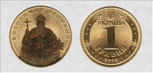 1 гривна 2008 г. Владимир Великий. Цена в Украине