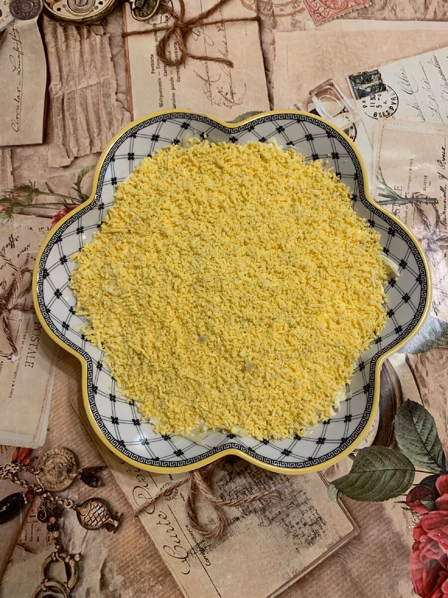Всем привет! Сегодня хочу поделиться с вами рецептом моего салата ленивой мимозы! Нам понадобиться: Для начала отварите яйца вкрутую. После остудите в холодной воде, почистите, разделите белки и желтки. Сыр натрите на мелкой терке. Далее я открываю баночку горбуши,сливаю жидкость и выкладываю горбушу на тарелочку и просто начинаю разминать вилочкой. Это первый слой салата. Сверху смазываю немного майонезом. На мелкой терке натираю белки и выкладываю поверх горбуши, и также смазываю немного майонезом. Следующий слой выкладываем поверх белка наш тертый сыр и смазываем майонезом. И последний слой выкладываем наши натертые на мелкой терке желтки и распределяем равномерно по всей поверхности салата. Можно убрать в холодильник на минут 20-30, чтобы настоялся, а можно кушать сразу если очень хочется! Готово! Приятного аппетита!