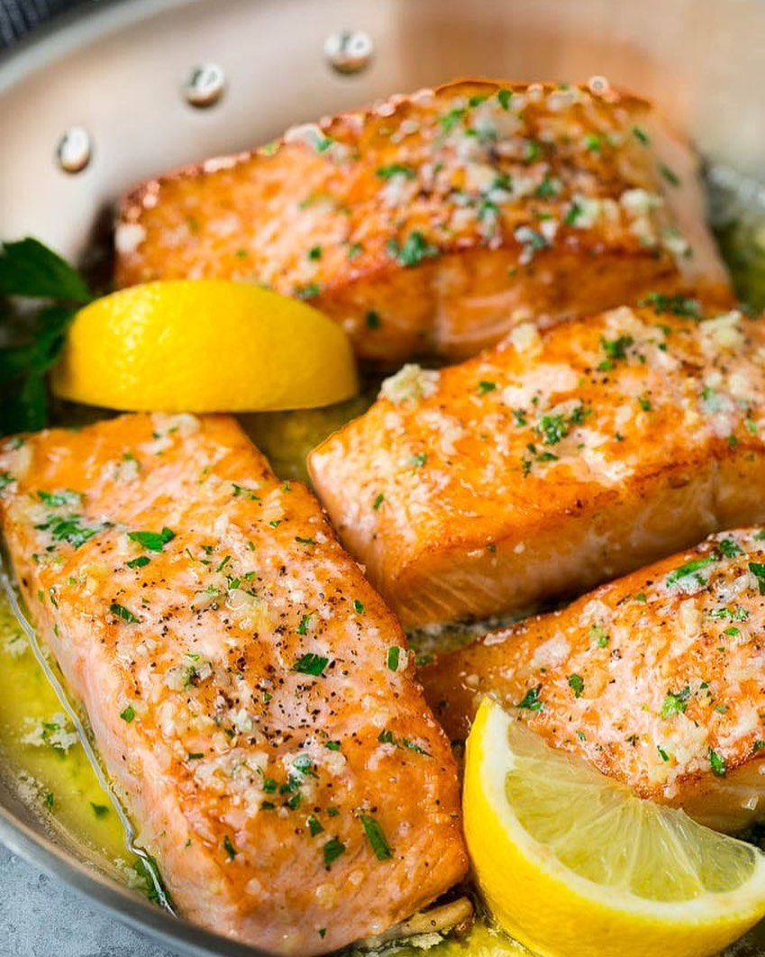 1) Разогрейте оливковое масло в сковородке на малом огне, посолите и поперчите форель.