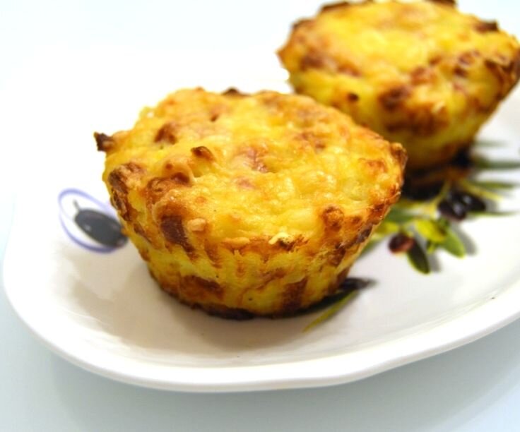 Если у вас немного свободного времени и много картофеля, этот рецепт ваш! Подробный рецепт Картофельных маффинов с сыром: Продукты (на 4 порции): Картофель - 400 г, Сыр твёрдый - 100 г, Мука пшеничная - 25 г, Крахмал картофельный - 15 г, Сухари панировочные - 4 ст. ложки, Чеснок - 1 зубчик, Лавровый лист - 1 шт, Соль - по вкусу, Масло растительное (или сливочное) - 1 ч. ложка, Масло сливочное (по желанию) - 25 г. 1) Достаем свежий картофель. Чистим его от кожуры и режем кубиками. Добавляем в кастрюлю к картофелю чеснок и лавровый лист. Соль можно добавить по вкусу. После этого ставим кастрюлю на огонь на 15 минут. 2) Убираем чеснок и лавровый лист из кастрюли. С помощью толкушки делаем из картошки пюре и полностью его остужаем. 3) Засыпаем в картофельное пюре муку и добавляем крахмал. 4) Формируем из теста 8 одинаковых шариков и разогреваем духовку до 180 градусов. 5) Кладем наш заранее приготовленный сыр на доску и разрезаем его на 8 равных частей. После чего делаем лепешку из