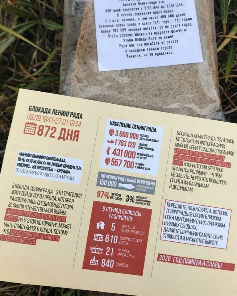 Об этом надо напоминать, чтобы люди не мутировали и не превращались в С каким-то то бешеным ритмом жизнь стирает рамки человечности. А у подрастающего поколения даже понимания нет, к чему это приведёт. Можно много рассуждать о причинах и последствиях, а также о том, как постараться избежать неосведомлённости. И не дать «знатокам» перекроить историю. В Краснодарском крае проходит акция «Блокадный хлеб». Суть акции в раздаче 125-граммовых паек хлеба и раздаче листовок. Блокада Ленинграда длилась 872 дня. Советский союз так и не смог точно подсчитать число погибших. По разным оценкам, в городе погибло от 692 000 до 1 500 000 человек, почти все из них — от голода. В Краснодаре точки проведения акции с раздачей «блокадного хлеба» с 25 по 27 января организуют по этим адресам: ▪️сквер имени Жукова; ▪️у обелиска в честь двухсотлетия Кубанского казачьего войска на пересечении улиц Красной и Буденного; ▪️Международный аэропорт Краснодара имени Екатерины II; ▪️автовокзал «Краснодар-1»; ▪