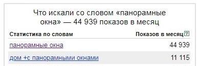 Даже если посмотреть статистику поисковых запросов жителей России в Яндексе, то видно, что интерес к панорамным окнам существует и нарастает - уже около 45 тысяч запросов в месяц.