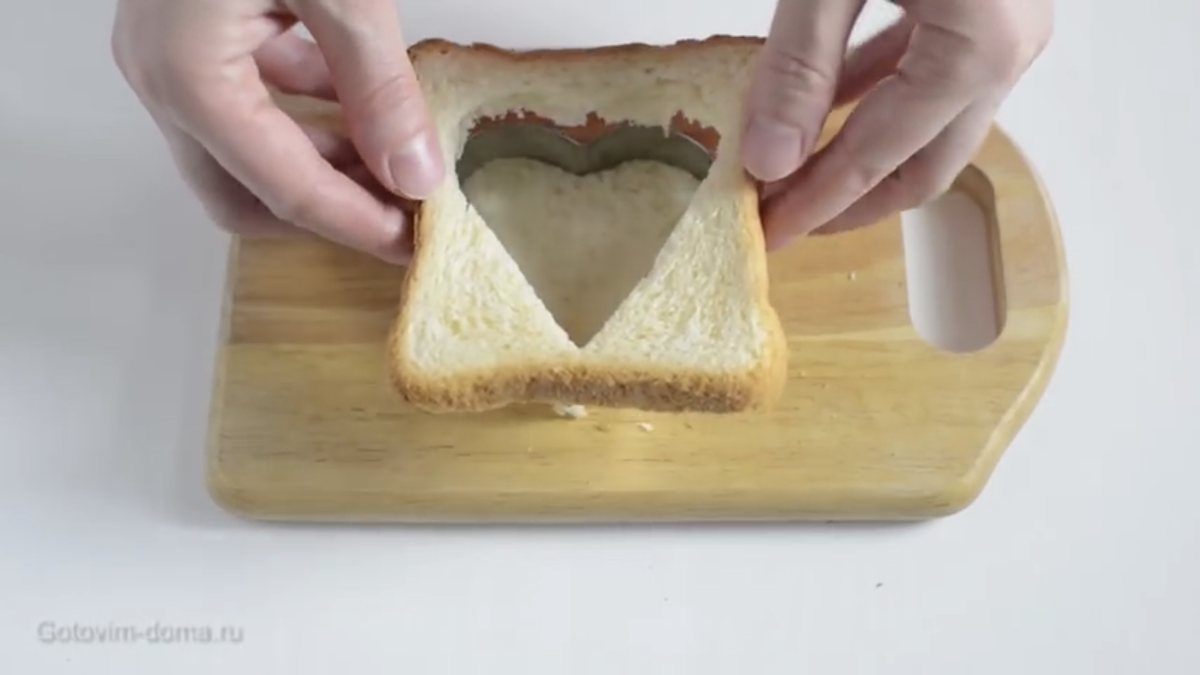1) Берём хлеб, яйцо, стакан, масло, соль, перец 2) Стаканам проделываем дырку в хлебе, но можно форму для выпечки печенье, просто стаканом удобнее 3) Разогреваем сковородку, и кладём жарить хлеб обжариваем с двух сторон до румяности 4) Берём яйцо и выливаем его в серединку 5) Посолить и поперчить по вкусу 6) Жарим яйцо 1,5 минут, после чего накрываем сковородку крышкой и жарим ещё 2 минуты 7) Ваш вкусный завтрак за 5 минут готов ПРИЯТНОГО АППЕТИТА
