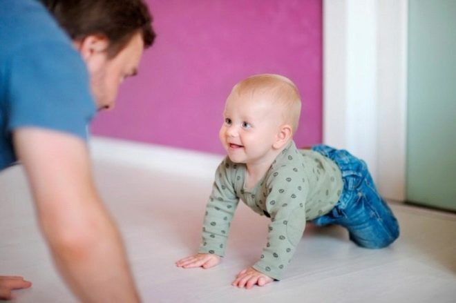 По поводу личного примера можно сказать многое. Но будет достаточно, если мы напомним, что ребенка до года личный пример — лучший учитель. Будет это выглядеть комично и нелепо, но маме и папе, не исключено, придется провести несколько дней, перемещаясь на четвереньках по квартире. Поверьте, после увиденного малыш с большой охотой начнет повторять за старшими такие непонятные, но очень забавные движения.