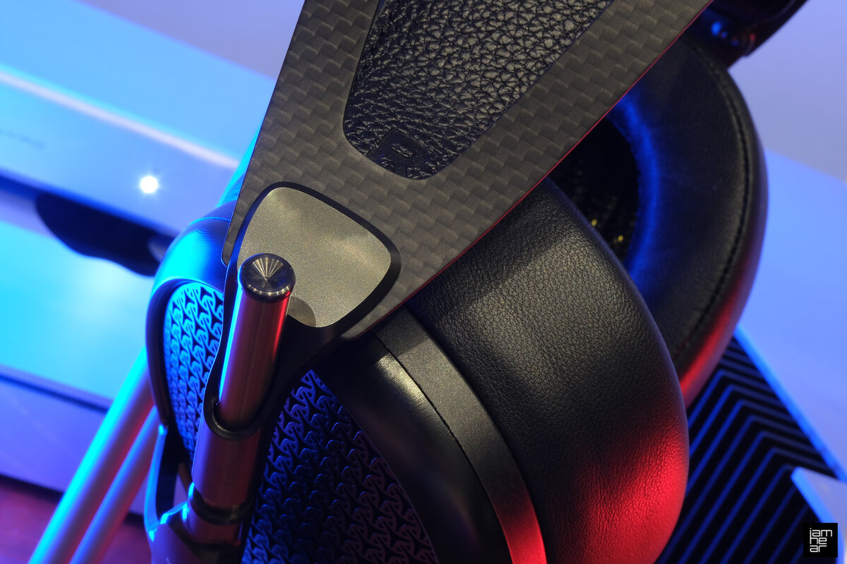 Большая работа видна в каждой детали Empyrean – удивительный дизайн, безупречная подгонка деталей и великолепная эргономика. Карбоновое оголовье с хитрыми изгибами кожаной перемычки сделано так, чтобы лучше распределять вес на голове, а необычная яйцевидная форма чашек, изготавливаемых более 20 часов на станках с ЧПУ, оптимально опоясывает ухо, создавая камеру нужной формы. И здесь начинается самое интересное.