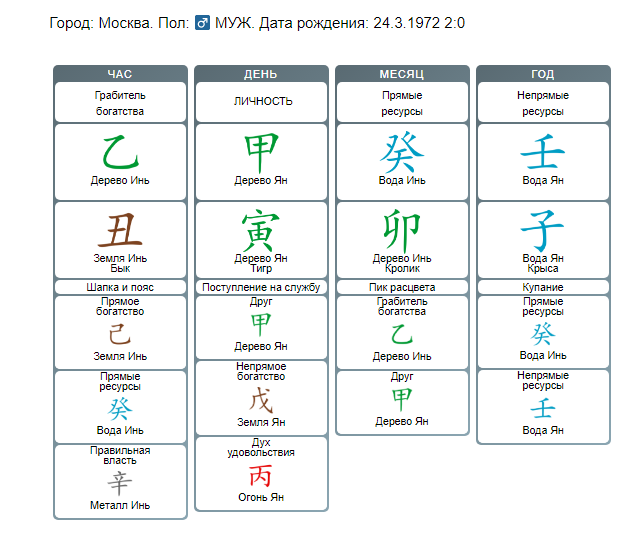 Но, не совсем точное. Буквально означает «изменяющееся состояние бытия» или «фаза развития» . Это 10 летний цикл. Есть 12 животных- круг Зодиака, который знаком каждому. Соединив их вместе мы получаем 60 вариантов сочетания НС и ЗВ- 60 особенных животных, которые мы привыкли уже встречать по китайскому календарю. Карта Судьбы , построенная по дате рождения может рассказать о человеке ВСЕ. Каждый начинающий обучение китайской астрологии, Бацзы, вынужден изначально освоить асы. То есть, мы начинаем с основ. Например- Дзя, это Янское Дерево и имеет свойство: расти, развиваться. Имеет положительные и отрицательные свойства характера. К отрицательным можно отнести такие свойства как- упрямство и настойчивость. Они, как таран, могут пробить любую стену. Дальше добавляется уже