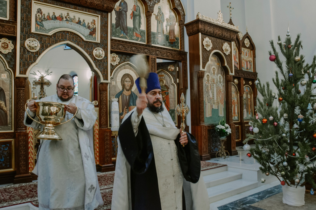 «Братья и сестры, сегодня Великий праздник Крещения Господня, Богоявления, Епифании, т.е. Просвещения. Сегодня Господь выходит являет себя миру и открывает, что Он есть истинный Бог, пришедший спасти каждого человека, и тех, которые жили тогда, и тех, которые живут сейчас, и тех, будет жить позже. Первые 30 лет Христос безмолвствовал, Он рос и воспринимал всю человеческую жизнь в ее многообразии, и вот в праздник Крещения начинается Его спасительная проповедь, Он являет себя миру как истинный Бог. Большинство людей, окружавших Спасителя в Его земной жизни воспринимали Христа как чудотворца, учителя, одного из воскресших древних пророков, а близкие ученики, подобно Петру, через некоторое время отрекались и оставляли Его. Только Пресвятая Дева Мария и Иоанн Креститель безусловно поверили и приняли, что Христос есть Сын Божий до его воскресения, поэтому мы почитаем их как высших среди всего церковного собора, среди всех святых и изображаем на иконах справа от Христа Богородицу, а слева - Иоанна Предтечу. Сегодня Иоанн крестит безгрешного Господа как простого человека, подобного нам во всём, кроме греха. В тот момент, когда Он погрузился в воду раздался чудный глас «Сей есть Сын Мой возлюбленный, в Котором Мое благоволение». Как видимое свидетельство благословения, богоприсутствия Христа в нашей жизни нам сегодня дана святая Крещенская вода, Великая Агиасма, которую благословил и исполнил своей благодатью Господь, поэтому мы с благоговением принимаем святую воду, берём её как лекарство для себя и родных, освящаем свое жилище».