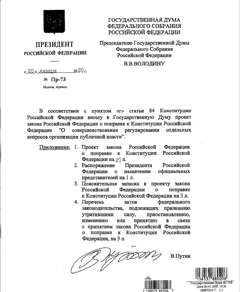 ПОПРАВКИ В КОНСТИТУЦИЮ РФ ВНЕСЕНЫ В ГОСДУМУ