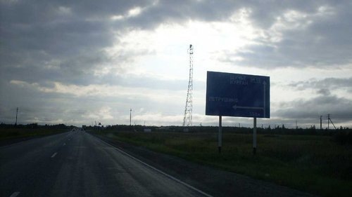 Продолжаем движение по трассе М-51 «Байкал». Пейзажи всё больше становятся степными. Точнее, смесью степи и болота. С каким-то странным сухостоем или с деревьями без макушек. Но асфальт остается приличным, просвет виден до самого горизонта и поэтому положившись на анти-радар мы, разогнавшись до предельно экономичной для «Оки» скоростью 105 км\ч, едем к Кургану.