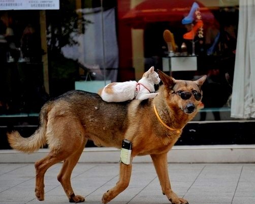 В провинции Юньнань, все знают 2-ух неразлучных приятелей – собаку и кота, которые так любят друг друга, собственно что не просто проводят время совместно – кот в прямом значении будто наездник восседает на его четырехногом приятеле. Собака не только не против такового «наездника», она сама спускается на четвереньки, дабы коту было комфортнее забираться ей на спину. Поражает воображение то, что животных этому никто не учил. Сюй Цзинь говорит, что прежде кошка много рыдала, когда собаку одну выводили на прогулку. «Она так жалобно мяукала, что собака, Ванцай, подошла к кошке и вероятно что –то по животному ей произнесла, так как кот прыгнул ей на спину, улегся и всю прогулку умиротворенно лежал». С тех пор Ванцай и Мими всякий раз гуляют совместно, в том числе и когда вблизи нет владельца. Когда-то их сняли корреспонденты, и видео тут же стало бестселлером и онлайн сетях. Конечно! Так как это можно увидать лишь только в цирке. Только здесь нет практически никакой дрессировки, а лишь