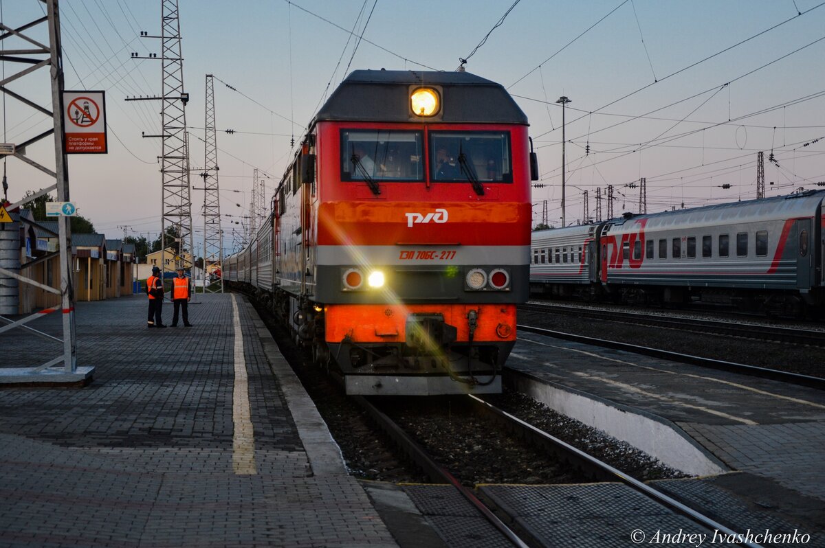 Тепловоз ТЭП70БС-277 с пассажирским поездом сообщением № 367 Кисловодск-Киров.