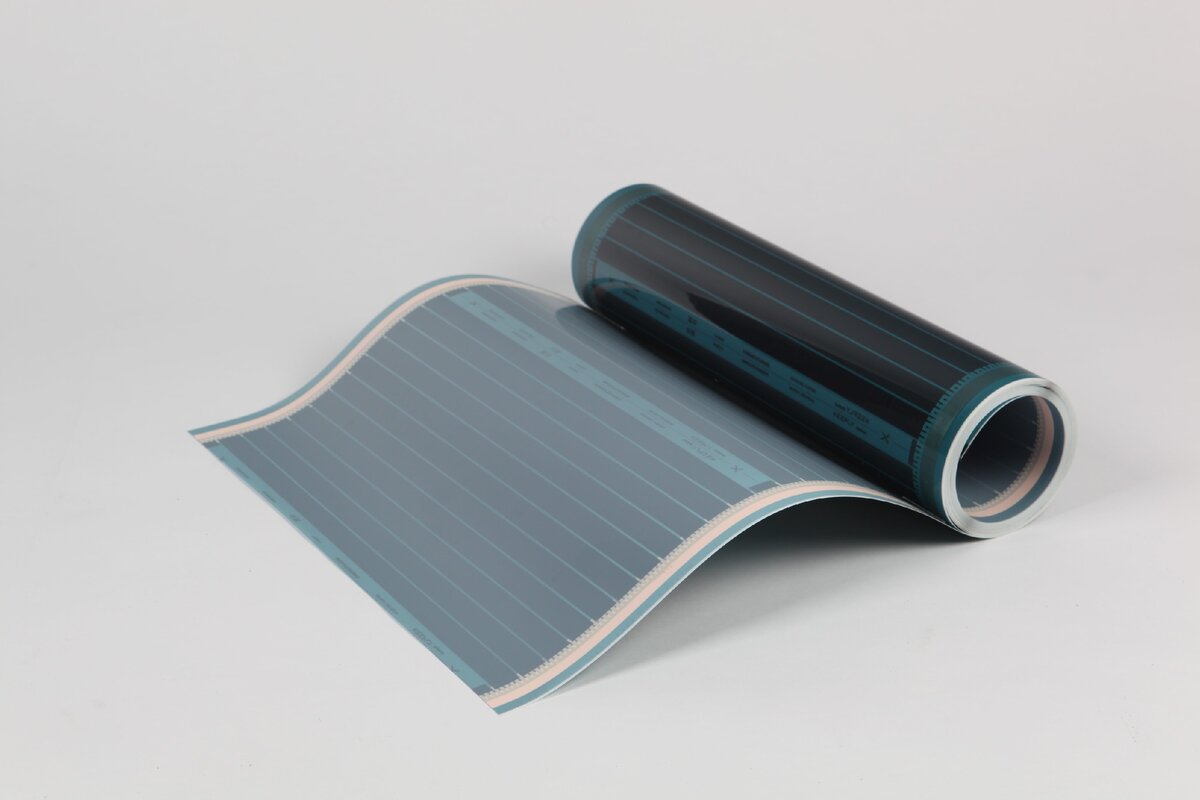 В 2010 году на рынке появились пленочные теплые полы. Пленка монтируется непосредственно под финишное напольное покрытие: ламинат, паркет, линолеум, ковролин. Это позволяет устанавливать теплый пол на заключительном этапе отделки. Такую пленку принято называть инфракрасной, хотя физически любое тепло является следствием инфракрасного излучения. Строение и принцип работы Пленочный теплый пол – это тонкая многослойная пленка из прочного износостойкого полиэтилена с расположенными между её слоями нагревательными элементами из карбона. На слое-подложке находятся нагревательные элементы из специальной карбоновой пасты. Существуют различные конфигурации карбонового рисунка, но в нашем магазине представлен один из самых надежных вариантов, когда элементы расположены параллельно друг другу. Благодаря такому расположению поломка одного нагревательного элемента не приведет к выходу из строя всей системы. Подвод электричества осуществляется через две медные шины. Электрический контакт между ме
