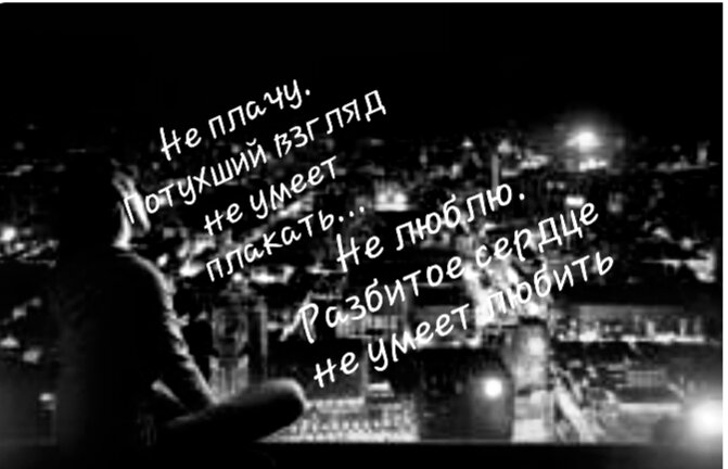Ты бьешься больно словами. Кричишь я плохая. Обжигает щеку отпечаток ладони. Ты кричишь, что таких выгоняют из рая. Ты кричишь, что дурак, что раньше не понял. Я не плачу. В потухших глазах не бывает слёз. Я привыкла. И просто молча смотрю в окно. Только в серых глазах немой вопрос: "Где мужчина, что любила когда-то давно?" Ты кричишь: "Твоя чертова красота! Я видел, как он на тебя смотрел!" А потом, рюмку горькой допив до дна, Будешь снова рыдать у моих колен. Потом будешь просить прощения и целовать. Швырять купюры и обещать все на свете купить. Я не плачу. Потухший взгляд не умеет плакать... Не люблю. Разбитое сердце не умеет любить...
