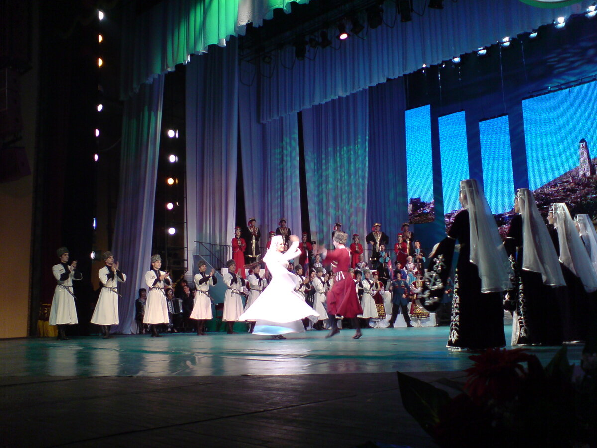 Если бы вы попали на заключительный гала-концерт фестиваля «Мир Кавказа», который проходил в Ростове-на-Дону, то, уверен, тоже получили огромное удовольствие от профессионального мастерства артистов из Южного региона России. А в гости к донским казакам приехали искусные танцоры и певцы с Кубани, из Карачаево-Черкессии, Дагестана, Ингушетии, Осетии, Калмыкии, Чечни, Волгоградщины, Астраханщины и Ставрополья. Казалось бы, ну все или почти все уже умерло в провинции, в том числе и национальное искусство, ан нет! Еще живы и здоровы люди, которые хотят радоваться, петь и танцевать, и оптимистически настраивать публику. Ей-богу, телевидение «задушило» нас ежедневными страшилками, а здесь увидел нескрываемую страстность, любовь к прекрасному, креативность. Естественно, «зажигали» кавказские горцы – с хождением по сцене со скоростью ветра на нижних пальчиках. Великолепное исполнение национальных мелодий пришло от хора адыгов, неповторимое подражание движениям бабочек показали калмыки