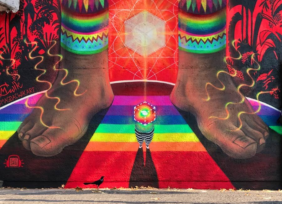 Найти внутреннее равновесие в хаотичном городе очень нелегко. Вы должны быть полны решимости, чтобы достичь его по дороге на работу или в ближайший от дома магазин. Для польской стрит-арт художницы Магды Квик стремление к равновесию начинается с высокой ноты и проходит через ваши музыкальные чакры. В городе Мехико она нарисовала мурал, который должен помочь местным жителям жить в равновесии. «Я объединила определенные цвета, образы, музыку и намерения поднять вибрации людей на улице. Стена фокусируется на связи с «Матерью-Землей», – пояснила суть своего рисунка художница. В стену вcтроен QR-код, просканировав который вы сможете услышать музыку для релаксации. «Как часто мы ходим босыми ногами, чтобы соединиться с Землей? Живем ли мы с ней в гармонии. Земля предоставляет нам все, что нужно, чтобы поддерживать нас, если мы живем в равновесии», – добавила Квик. На видео, которое расположено ниже, вы можете услышать один из примеров музыкального сопровождения для рисунка.