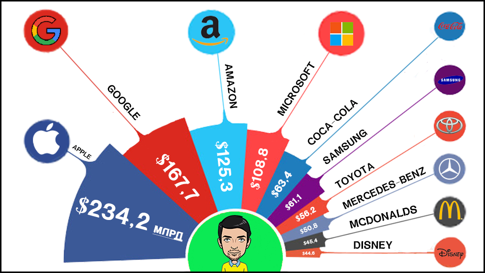 Ниже подробно расскажу чем стоимость бренда отличается от стоимости компании, а также поделюсь итогами своего интернет-исследования — представляю ТОП-100 самых дорогих брендов в мире и ТОП-13 самых дорогих брендов России в 2020 году►►