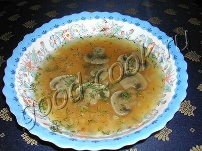 1л воды, 200г свежих шампиньонов, 1 маленькая луковица, 1 зубчик чеснока, 1/2~2/3 стакана красной чечевицы, 1/2~2/3 ч ложки соли, перец, 1 лавровый лист, при желании - 1 небольшая морковка