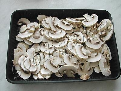 Грибы порезать пластинками, положить на противень и поставить в духовку при t=220°C на 10~15 минут (на время приготовления лука).