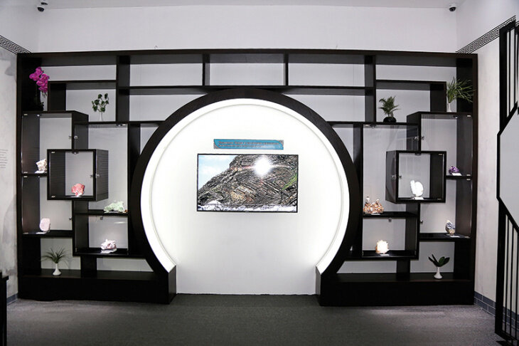 По словам директора музея, весь дизайн выставки разработан китайской стороны. Здесь был создан уникальный интерьер для полного погружения в китайскую действительность – сад из темно-синих кирпичей и черной черепицы, а витрины, которые послужили временным домом для кристаллов, были стилизованы под загнутые края крыш, характерные для архитектуры Поднебесной. Дополняли все это китайская национальная музыка и традиционные фонарики.