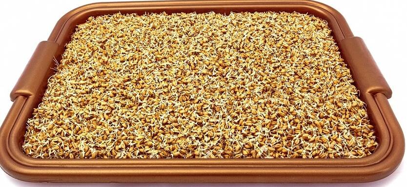 Сегодня здоровый образ жизни является модным. Все более востребованной является информация о натуральных продуктах, богатых витаминами, микроэлементами и прочими полезностями для человеческого организма. Овощи, фрукты теперь находятся в здоровой конкуренции с крошечными росточками пророщенных зерен. Какое зерно можно проращивать? Практически любое: пшеницу, рожь, все бобовые культуры, ячмень, лущеный подсолнечник. Зерна пророщенной пшеницы являются источником так необходимых организму витаминов Е, В, а также богаты содержанием железа, кальция, фосфора и магния. Кроме того, они стабилизируют обмен веществ, улучшают работу кишечника, повышается иммунитет и невосприимчивость организма к простудам и инфекциям, препятствует выпадению волос, омолаживает все системы организма. Они способны растворять клейковину в кишечнике и защищают от заболевания рака, рассасывают всевозможные опухоли, полипы, фибромы, насыщают организм кислородом. И даже повышают потенцию. Ростки пшеницы можно потреблят