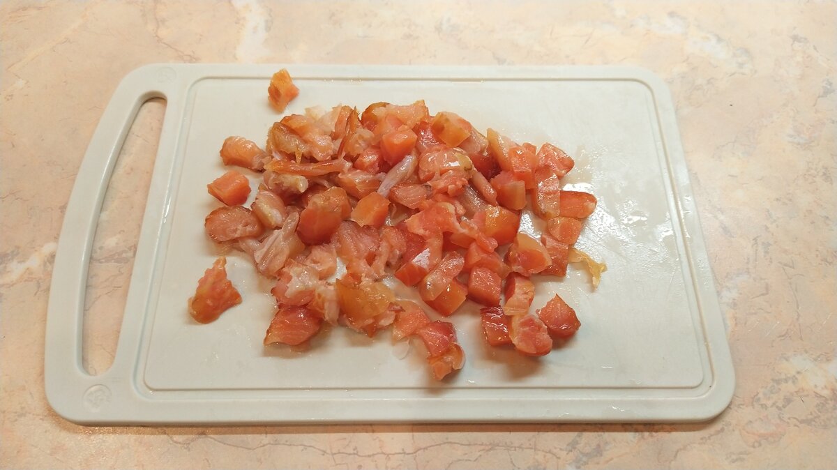 Для салата на большую компанию, понадобится всего 200 грамм копчёных брюшек. У них очень ярко выражен вкус и аромат, что и