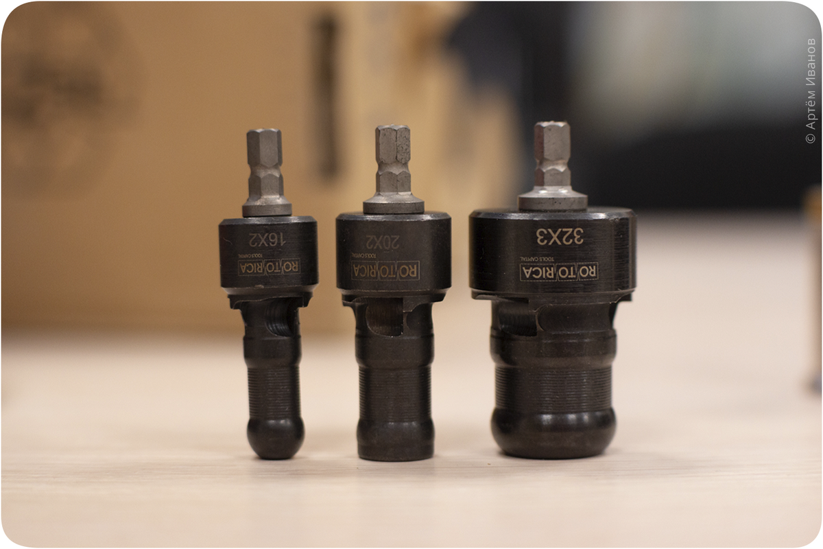 Каждая насадка под конкретный диаметр. 14, 16, 18, 20, 26, 32, 40, 50 и 63мм.