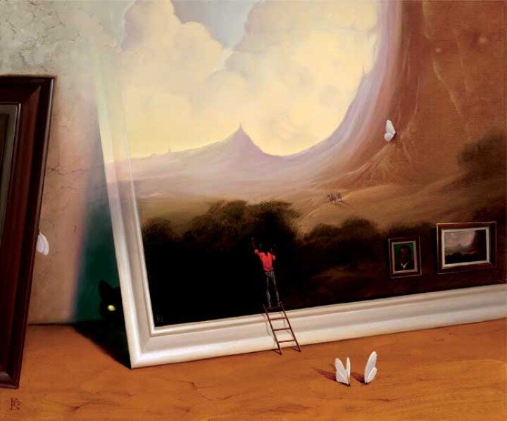 Поэзия - это молитва. Если ум не молится, не умоляет(уменьшаяет себя в суете), то и откровение не случается. ) Пироскаф Картины того же художника - Виктора Брегеды - без сюрреализма откровения не выразить. Откровение - это раскрытая книга, два ума вместе, отражённых друг в друге . Душа в уме и ум в душе, как бесконечное в конечном. ) Дикою, грозною ласкою полны,