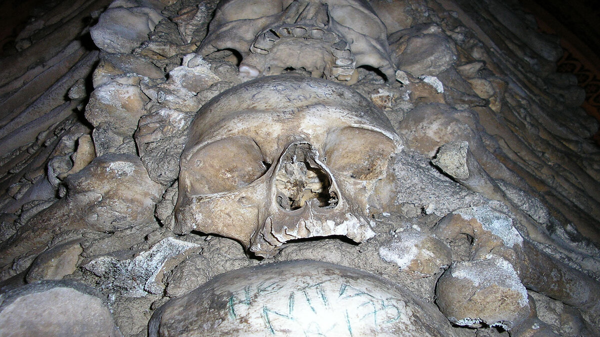 Capela dos Ossos или Часовня костей - один из самых известных и жутких памятников в Португалии. Часовня расположенная рядом с входом в церковь Святого Франциска в Эворе. Получила свое название потому, что её внутренние стены покрыты и украшены человеческими черепами и костями. Capela dos Ossos была построена в XVI веке францисканским монахом Он хотел подтолкнуть своих братьев к созерцанию и донести до них мысль о том, что земная жизнь — лишь временное явление Знаменитая надпись при входе в часовню гласит: «Nós ossos que aqui estamos pelos vossos esperamos» (Мы, кости, которые находятся здесь, ждём вас) Мрачная часовня состоит из трёх пролетов 18,7 метров длиной и 11 метров шириной. Свет проникает через три небольших отверстия слева 0 Стены и восемь столбов оформлены тщательно упорядоченными «узорами» костей и черепов, скреплённых цементом Потолок сделан из белого кирпича и расписан фресками на тему смерти 0 Количество скелетов монахов приблизительно равно 5000 Кладбище монахов расп