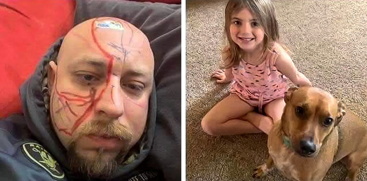 Хотя дети невероятно милые, иногда они совершают вещи, которые могут заставить их родителей задаться вопросом: «Смеяться или плакать?» С точки зрения ребенка, абсолютно нормально разукрасить лицо своего отца или закатить истерику, потому что им не разрешали съесть щепку дерева. Есть даже много неловких ситуаций, которые случаются с детьми из-за смартфонов - посмотрите гифку в конце статьи. Мы уважаем всех мам и пап и желаем им максимум сил, терпения и спокойствия в трудных родительских начинаниях. 15. Отец был подвержен вандализму «Прошлую ночь с провел за работой, а сегодня, когда я проснулся, я был вандализован. У меня есть фотография доказательства, и я задержал двух подозреваемых, но один из них хранит молчание. Единственная, кто идёт на разговор, обвинила в этом четвероногого подозреваемого, у которого нет рук, чтобы осуществить такой трюк. Спасибо моему соседу за то, что он предупредил меня о том, что у меня разрисовано все лицо, когда я повел четвероногого подозреваемого на