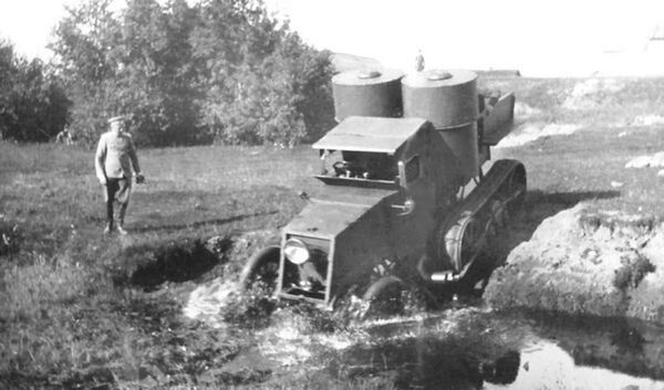 Остин с приспособлением Кегресса Страна: Великобритания по заказу России/Россия Производитель Austin/Кегресс Год производства: 1916 Произведено: 1 Шасси: Austin 30HP Экипаж 4 Бронирование: 7 мм Вооружение: 2х7,62-мм пулемет Максим обр 1910 г. Двигатель: 6,077 cm3, 50 л.с. В 1916 году конструктор гусеничных приспособлений Адольф Кегресс довел конструкцию своих мягких гусеничных движителей до возможности реального применения, но заказчиков на легковые машины с таким приспособлением найти в годы войны было невозможно, и конструктор нашел верного адресата: военное ведомство, пообещав сделать приспособления для боевых машин, что было принципиально иной задачей, учитывая массу броневиков и важность надежной работы механизмов. Тем не менее Кегресс справился, что к концу десятилетия привело к созданию первого серийного образца полугусеничной бронетехники в мире. После того, как Кегресс в октябре 1915 года предложил свой движитель для нужд санитарных машин, ГВТУ предложило ему разработа