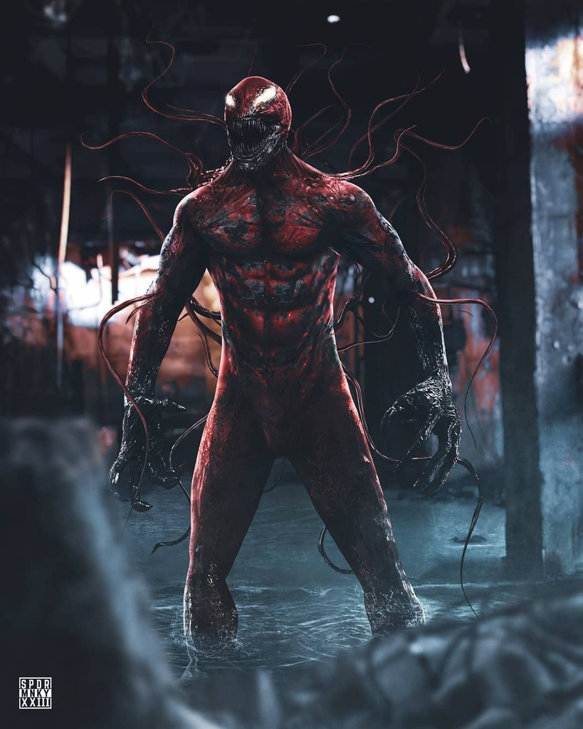 В интернете наконец появились изображения инопланетного симбиота Карнажа (Carnage), который станет главным злодеем фильма «Веном 2» с Томом Харди (Tom Hardy) и Вуди Харрельсон (Woody Harrelson). Новое изображение демонстрирует смертельно опасного Карнажа (Клетуса Кэседи) в полный рост. Именно этого персонажа в «Веном 2» сыграет знаменитый актер Вуди Харрельсон. Том Харди вернется в роли Эдди Брока и, собственно, самого Венома. Скорее всего, вторая часть «Веном 2» покажет противостояние именно этих двух симбиотов и их носителей. На новом опубликованном кадре Карнаж изображен со своей привычно большой пастью, а также острыми когтями. В целом он выглядит довольно грозно. Сама студия до сих пор не представила никаких фотографий главного злодея, а потому до конца не точно, как он будет выглядеть. Фанат по прежнему строят свои версии симбиота. Стоит также отметить, в картине помимо двух симбиотов может появится и Человек-паук из киновселенной Marvel в исполнении актера Тома Холланда (T