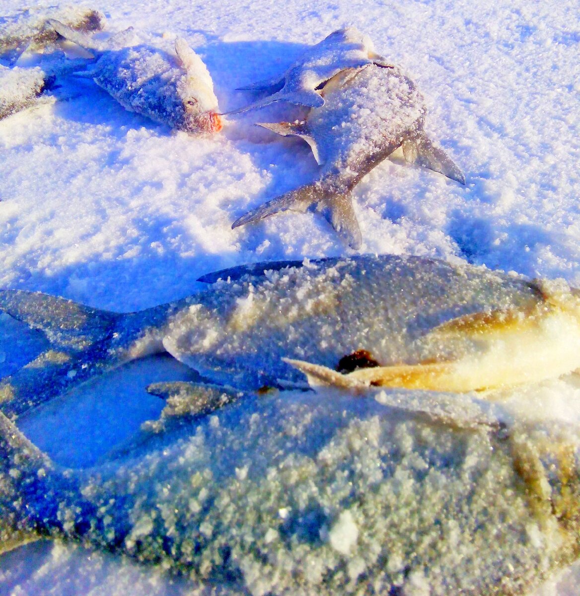 Очередной выезд за «фанерой» решил сделать на Еланчик. Цель была – провести сравнительные испытания зимних прикормок. Озеро это изобилует некрупным подлецом, хотя, есть и вполне съедобные экземпляры. Вышел на точку по навигатору, там в прошлом году неплохо поклевывало. К счастью, точка далеконько от берега и конкурентов было не много, вполне хватит места для 8 лунок (как-то получилось, что это количество лунок при ловле подлещика стало для меня стандартом). Просверлил лунку, опустил датчик эхолота. Ура! Сразу попал на рыбу. Довольно приличные экземпляры проходили возле дна и до метра от него. Выше – плотные косяки мелочи. Вообще, на этом озере крайне сложно ловить подлещика на живые насадки – оно буквально набито карликовым окунем и мелкой плотвичкой. Поэтому основной приманкой для подлещика здесь стал чертик. На двух крючках тройника – по 1/3 искусственного репейника Takedo. (Как я оснащаю удочку с чертиком для подлещика, читайте здесь) Для чистоты эксперимента решил кормит