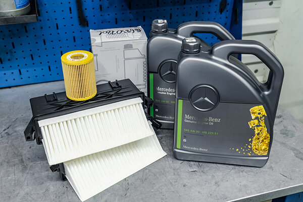 Премиальные Mercedes GL-класса относятся к сегменту полноразмерных SUV автомобилей и отвечают самым высоким требованиям автовладельцев. В зависимости от комплектации и года выпуска, эти автомобили требуют индивидуального подхода к обслуживанию и своевременного ремонта. В наш сервисный центр обратился владелец Mercedes GL 350 CDI чтобы выполнить плановое обслуживание автомобиля. В стандартное ТО входит замена салонного и воздушных фильтров, масла, масляного фильтра, проверка технического состояния автомобиля и компьютерная диагностика. Замену масла рекомендуется выполнять каждые 6-8 тыс. км пробега. У автомобилей с дизельными силовыми агрегатами интервал замены моторного масла меньше, чем у бензиновых. Это связано с конструктивными особенностями и условиями эксплуатации двигателей. Для замены были использованы оригинальные фильтры и масло SAE 5W-30 с допуском 229.51, рекомендованное для данной модели Mercedes. После проведения диагностики мастер приступил к замене фильтров. Для того что