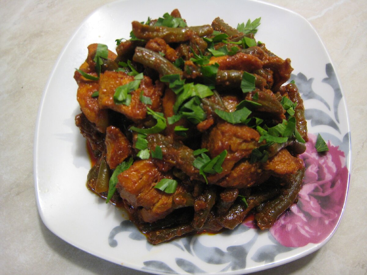 Курица со стручковой фасолью в томате - простейший рецепт вкусного блюда. Пошагово с фото.