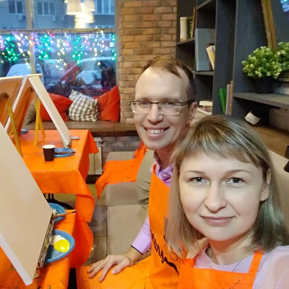 Мы с мужем устроили себе нестандартный досуг и посетили арт-вечеринку! Это как урок рисования, но в более приятной атмосфере - в стильной кофейне в центре города, под музыку и с бокалом вина (или другого напитка за счет заведения) для расслабления и полного погружения в творческую атмосферу. Особых навыков не нужно - художник все пошагово объясняет и рисует вместе с нами)) И в конце каждый уносит домой настоящий шедевр! Я давно загорелась сходить на такое мероприятие, а узнав, что в нашем городе их тоже проводят, радостно запрыгала перед мужем: "Хочу, хочу, хочу!!!" Как все происходило В нашем городе арт-вечеринки проводятся каждую субботу. Расписание и тематику на месяц вперед можно найти на сайте вечеринки. Мы долго определялись с картиной и соответственно с датой, когда эта картина будет рисоваться. Выбрали "Огни Ван-Гога", потому что муж сказал, что не потянет что-то более сложное. В кофейне нас встретили художница, ее помощница и фотограф. А бармен тут же предложил выбрать на