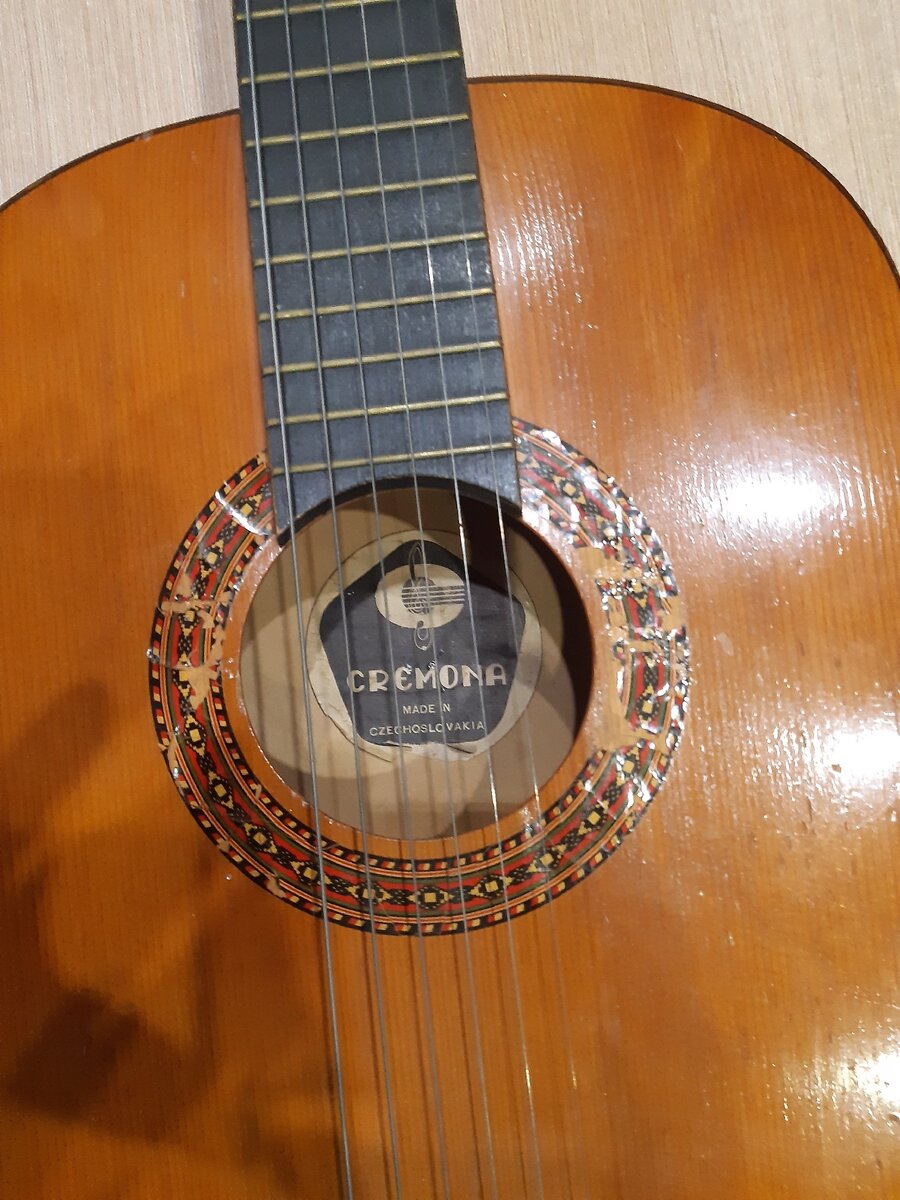 Решил обновить бридж на чехословацкой Кремоне выпуска конца 70-х. В таком виде она попала ко мне в коллекцию уже давно, но как-то все руки не доходили. Начал с чего попроще. Поменял колки с одной стороны. С другой оставил на память оригинальные. Эти тоже с Кремоны, только с современной. Переходим к основной проблеме. Предыдущий хозяин, по всей видимости, уже пытался исправить недочет, но мне от этого только сложнее. Он вставил три болта насквозь, налил в щель какого-то клея и замазал это дело черным автогерметиком. Что поделать... Нужно отрывать. Оторвал я его, как ни старался, "с мясом". Открылись дырки, которые, по ходу дела, там уже были в следствие прошлого отрыва уже с болтами. После чего бридж поставили обратно, добавив третий болт по центру. Плюс внутрь гитары вложили брусок под бридж прям на ребра жесткости и притянули. Внутри обнаружил еще одну бяку. Центральное ребро жесткости сбоку отклеилось. Удаляю остатки клея. Поверхность для установки нового бриджа, мягко говоря, та