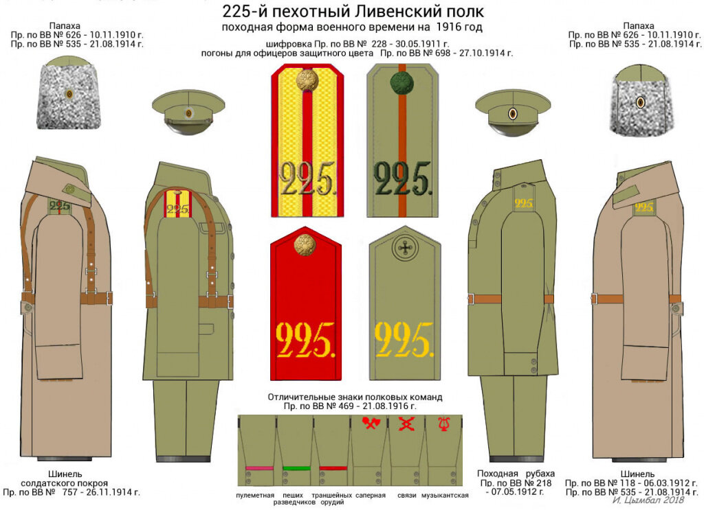 Помимо кадровых частей регулярной армии, владевших боевыми традициями, во время русско-японской и первой мировой войн из запасных подразделений также образовывались формирования, носившие имена городов Орловского края. Так во время проведения всеобщей мобилизации в июле-августе 1914 г. был создан и 225-й Ливенский полк. Формировался он в городе Калуге и вошел в состав 1-й бригады 57-й пехотной дивизии. Просуществовал Ливенский полк недолго, до 1917 года, но вошел в историю Первой Мировой войны, как участник героической обороны крепости Осовец.
